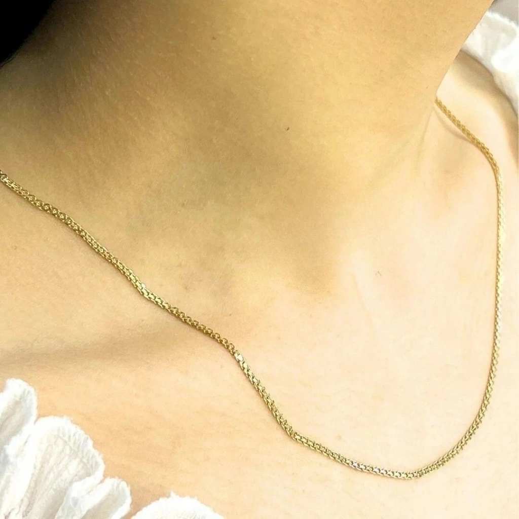 Bu 14 ayar altın ayna zincir, zarif ve parıltılı yapısıyla dikkat çeken modern bir tasarıma sahiptir. 3,52 gram ağırlığındaki zincir, 55 cm uzunluğundadır ve "ayna" olarak adlandırılan pürüzsüz, yansıtıcı yüzeyi sayesinde ışıltılı bir görünüm sunar. Zincirin ince yapısı ve şık tasarımdır . Günlük kullanımdan özel davetlere kadar her ortamda kullanılabilecek bir aksesuar olmasını sağlar.