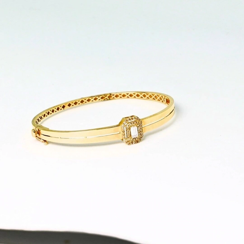 14 Ayar Altın Baget Kelepçe 7,60 Gram : Baget kesim, keskin hatları ve pürüzsüz yüzeyi ile dikkat çeker; bu nedenle bu kelepçe, klasik bir görünüm sunarken modern bir dokunuş da taşır. 14 ayar altın kullanımı, bu takının hem estetik hem de uzun ömürlü olmasını sağlar. Kelepçe, günlük kullanım için uygundur . Olduğu gibi özel günlerde de şıklığınızı tamamlayacaktır . Özel bir üründür .