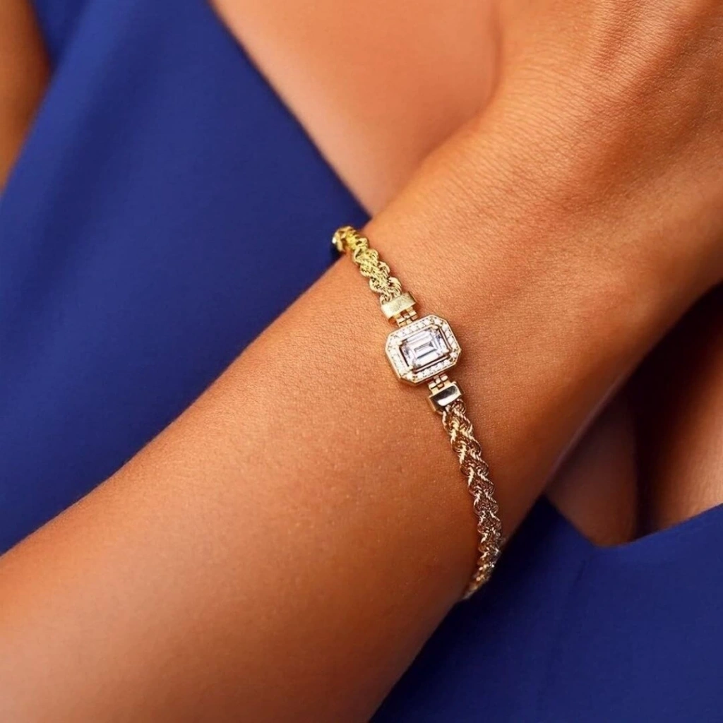 Bu şık 14 Ayar Altın Baget Örgü Set Takımı, modern tasarımını zarif baget detaylarıyla birleştiriyor. 18,04 gram toplam ağırlığındaki bu set, hem kolye hem de bileklik parçasından oluşur. Hasır örgü deseni ve baget taşlar, setin estetik görünümüne sofistike bir dokunuş katarak, her türlü özel gün ve günlük kullanım için mükemmel bir seçenek sunar.