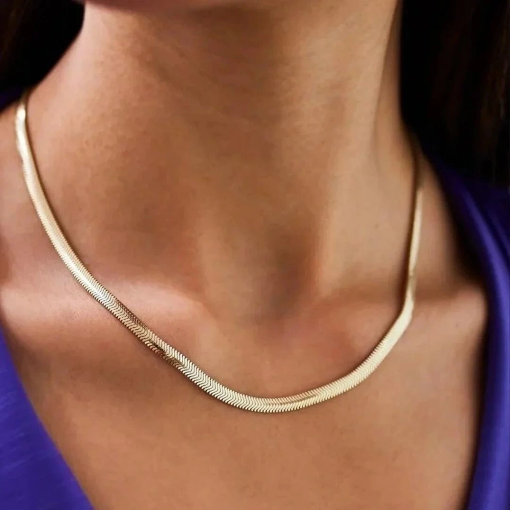Klasik balık sırtı deseninin modern bir yorumudur. 14 ayar altın kullanılarak üretilen zincir. Bu da onu daha dayanıklı ve parlak bir seçenek haline getirir.