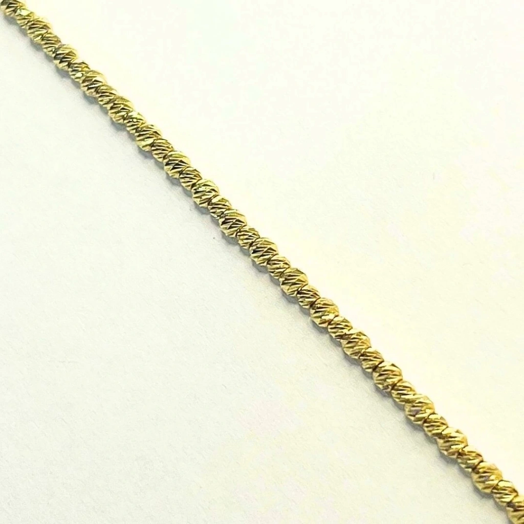 Bu 14 Ayar Altın Dorika Bileklik, Atölyemiz tarafından özenle üretilmiştir . Yüksek kaliteli malzemeler kullanılarak yapılmış ve şıklığı ile dikkat çekmektedir. Bu bileklik, 14 ayar altın kullanılarak üretilmiştir ve 4,30 gram ağırlığındadır. Zarif Dorika tasarımıyla öne çıkar ve bileğe mükemmel bir şekilde oturur. Altın halkaların birleşimiyle oluşturulan bileklik, ince detayları ve parlak yüzeyiyle göz alıcı bir görünüm sunar.Dorika bileklik, herhangi bir kıyafeti tamamlayacak şık bir aksesuardır.