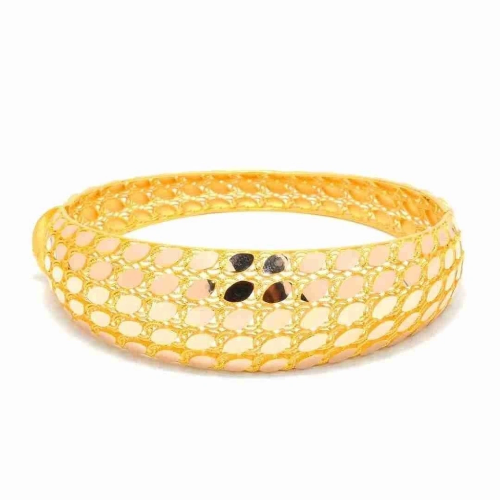 Evla Kuyumculuk'un özel koleksiyonundan 14 Ayar Altın Tasarım Pullu Kelepçe, göz alıcı ve şık bir kuyumculuk ürünüdür. Bu kelepçe, yüksek kaliteli 14 ayar altın kullanılarak özenle tasarlanmış ve işlenmiştir. Pullu tasarımıyla dikkat çeken bu kelepçe, benzersiz bir görünüm sunar ve her türlü kıyafetle mükemmel bir uyum sağlar. Bu özel kelepçe, 18,50 gram ağırlığıyla sağlam ve gösterişli bir yapıya sahiptir. Bu sayede bileğinizi etkileyici bir şekilde süsler ve şıklığınızı vurgular. Pullu tasarım, kelepçenin üzerindeki detayları daha belirgin hale getirir ve ışıltılı bir etki yaratır.