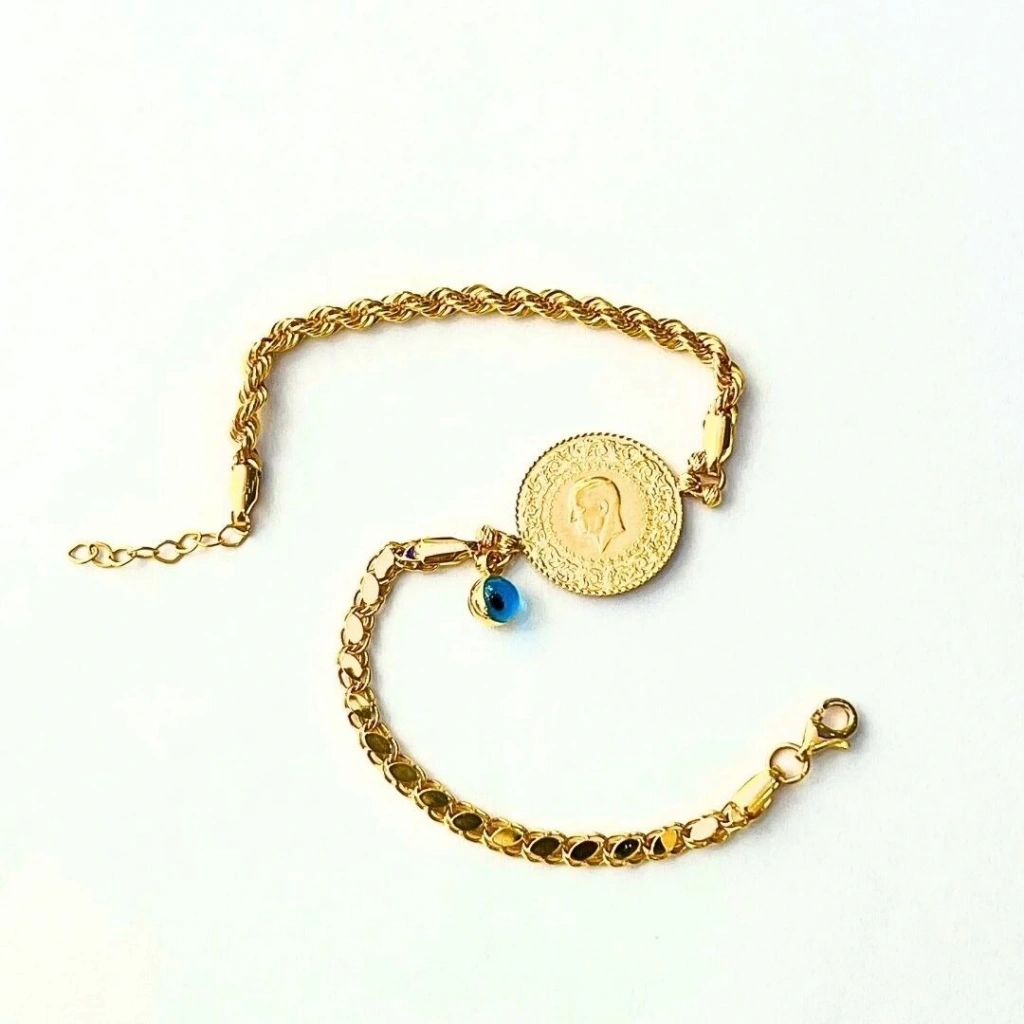 Tasarım: Pullu halat örgü ve çeyrek altınlı bileklik