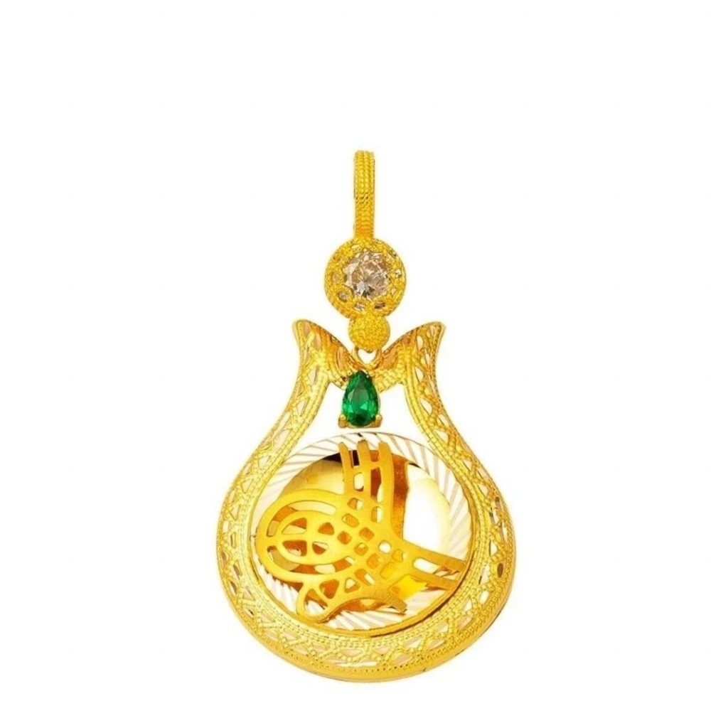 Bu altın kolye, yüksek kaliteli 14 ayar altından üretilmiş olup 6,84 gram ağırlığındadır. Kolyenin merkezinde zarif bir şekilde yer alan Tuğra sembolü, Osmanlı İmparatorluğu'nun tarihi ve anlamlı bir sembolüdür. Tuğra sembolü, güç, otorite ve zengin bir kültürel mirası temsil eder.