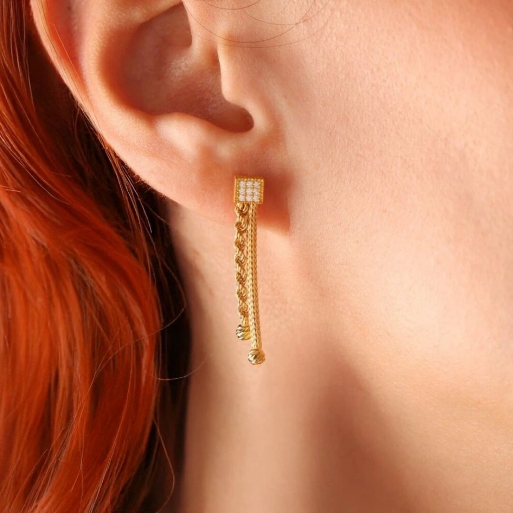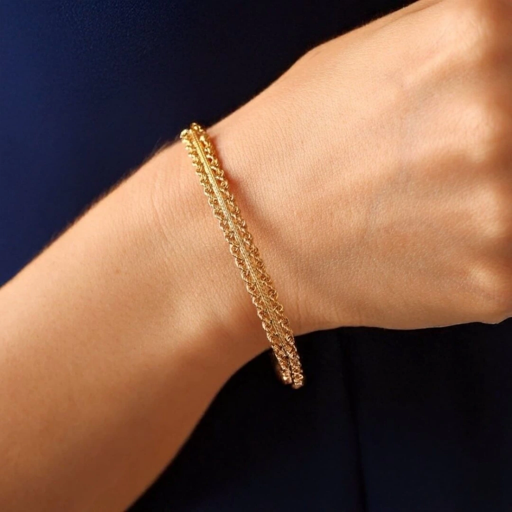 Klasik halat örgü tasarımı ile şıklığı ve sağlamlığı bir arada sunar. Hem kolye hem de bileklikten oluşan bu set, 8 ayar altından üretilmiş ve günlük kullanım için ideal bir aksesuardır.