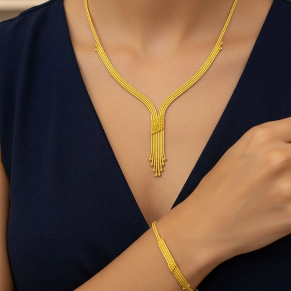 8 ayar altın kalze suyolu set takımı, hafif yapısı ve kullanışlı tasarımı sayesinde gün boyu rahatlıkla kullanılabilir. Hem şık bir aksesuar hem de değerli bir takı olarak tercih edilen altın set modelleri, uzun ömürlü kullanım sunar.