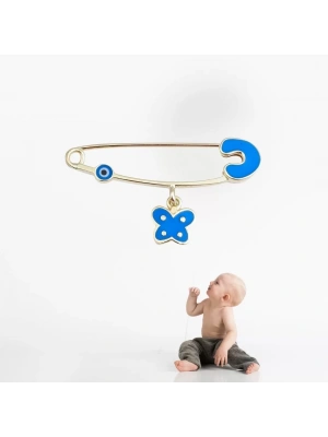 14 Ayar Altın Mavi Kelebek Bebek İğnesi