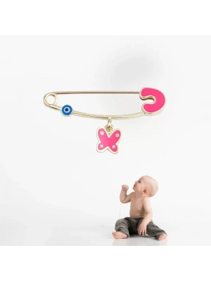 14 Ayar Altın Pembe Kelebek Bebek İğnesi