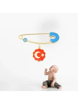 14 Ayar Altın Türk Bayrağı Bebek İğnesi