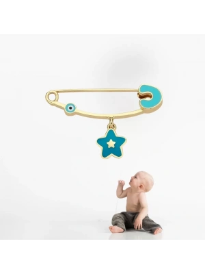 14 Ayar Altın Gözlü Uğurlu Bebek İğnesi