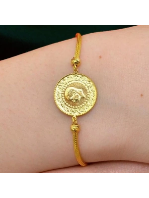 14 Ayar Pullu Halat Çeyrekli Bileklik