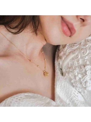 14 Ayar Altın Zincirli Güneş Dorika Kolye
