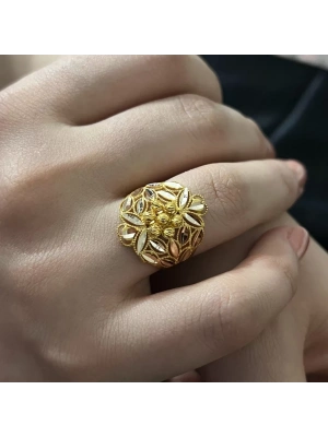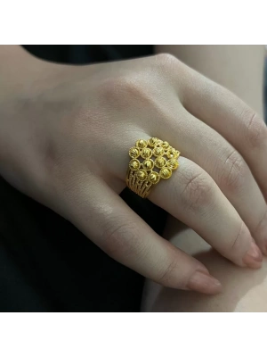 14 Ayar Altın Üç Sıra Renkli Dorika Yüzük