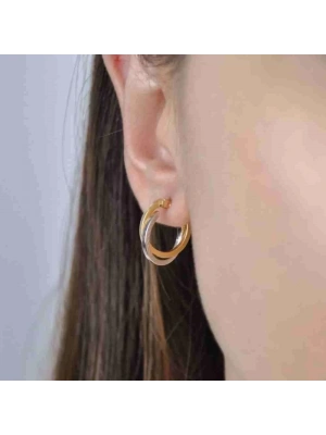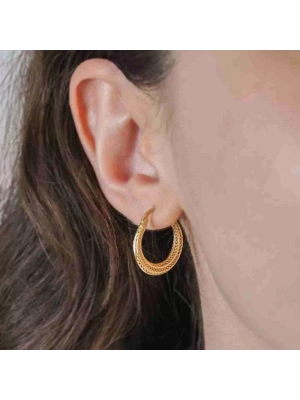 14 Ayar Altın Üç Sıra Taşlı Halka Küpe