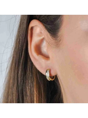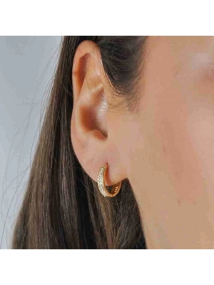14 Ayar Altın Çift Sıra Taşlı Halka Küpe