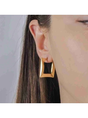 14 Ayar Altın Köşeli Taşlı Halka Küpe