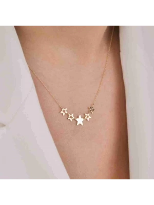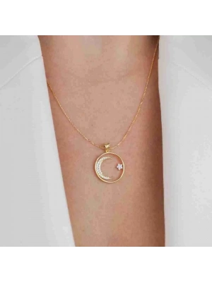 14 Ayar Altın Çerçeve Ayyıldız Kolye