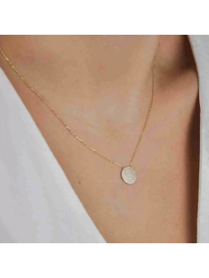 14 Ayar Altın Çerçeve Taşlı Kolye