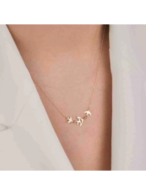14 Ayar Altın Üçlü Kırlangıç Kolye