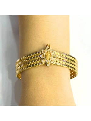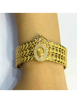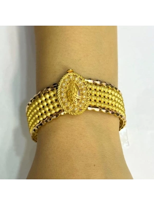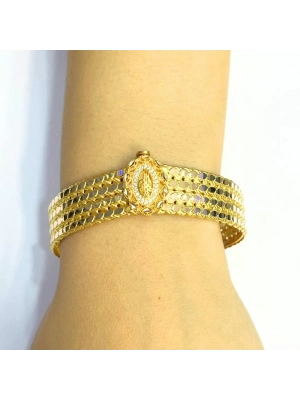 Sarı Altın 4 Sıra Çiçek Tuğra Kelepçe