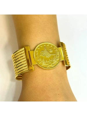Sarı Altın 4 Sıra Pullu Tuğralı Kelepçe